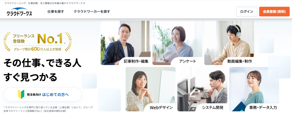 クラウドワークスはランサーズと並び業界最大手のクラウドソーシングサービス。2012年よりサービスを開始しました。