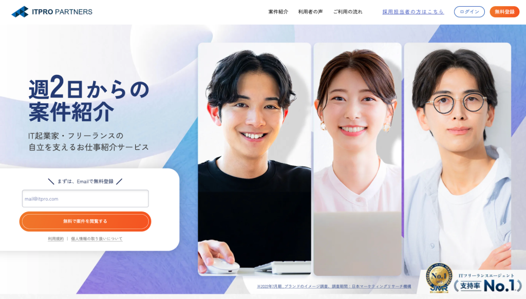 ITプロパートナーズは、週2,3日からの柔軟な案件紹介が特徴で、本業と両立しながら副収入を得たい方に最適です。エンド直の案件が多く、高単価を実現している点も魅力です。