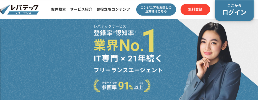 - 案件の97%がリモート案件!ITエンジニア・デザイナー向けフリーランスエージェント