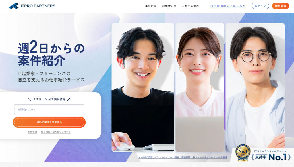 「ITプロパートナーズ」はエンジニアやWebデザイナー、マーケターなど、IT分野に特化したエージェントです。