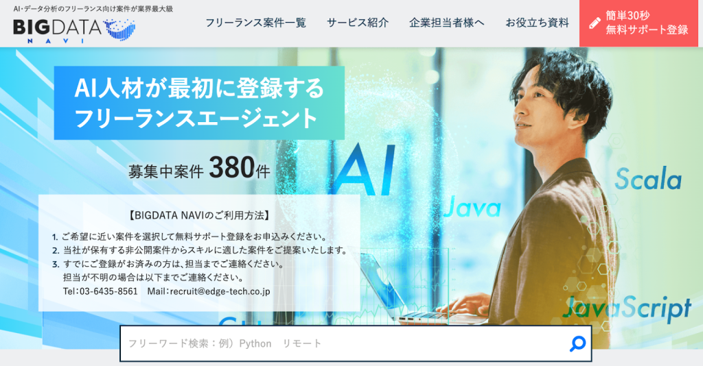 | BIGDATA NAVI | ・AIエンジニア ・BIエンジニア ・データサイエンティスト | 343件 |