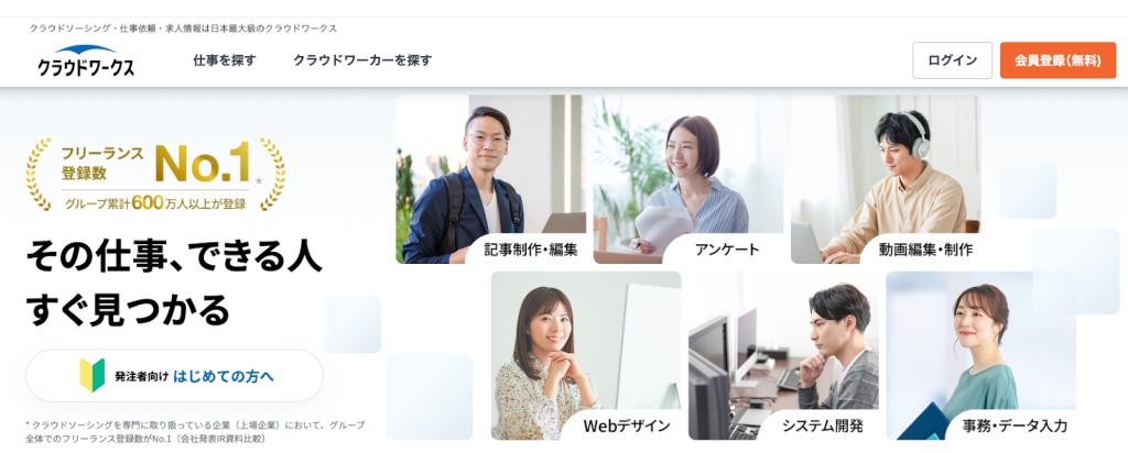 特徴はマッチング型サイトよりも気軽に利用可能で、なおかつ幅広いジャンルの案件が募集されていることです。初心者向けの案件が比較的見つけやすく、初心者の実績づくりにも役立ちます。ただし、単価が低い案件も多い点には注意が必要です。