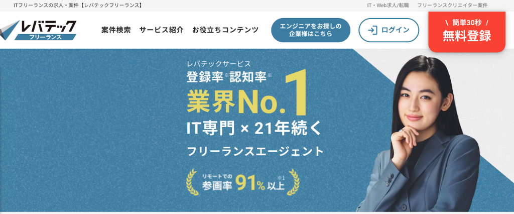「レバテックフリーランス」は、IT案件を専門とするフリーランスエージェントです。