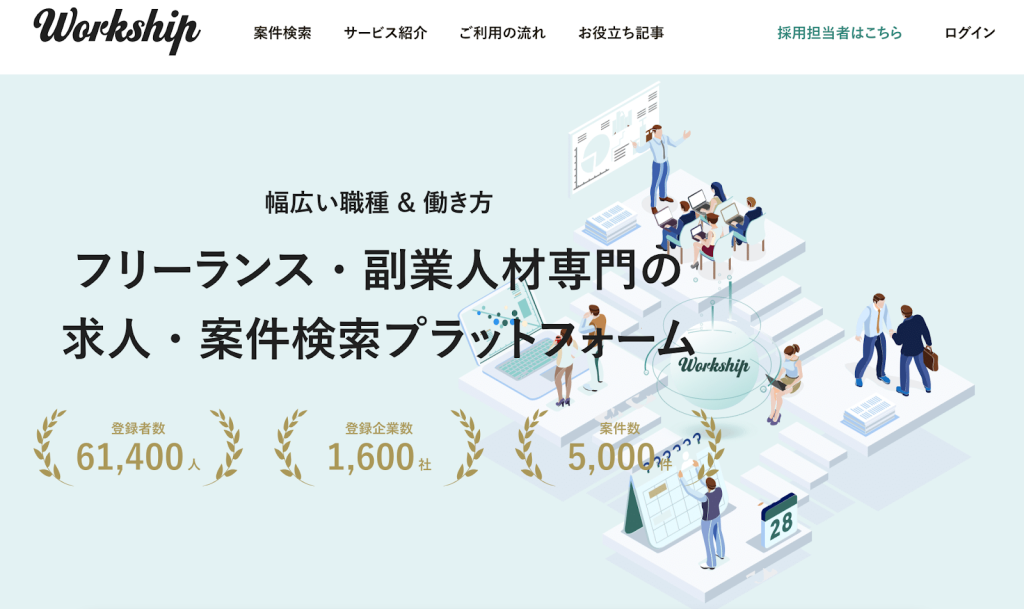 | Workship | ・エンジニア ・Webデザイナー ・編集・ライター ・ディレクター ・マーケター | 約15% | 716件 |