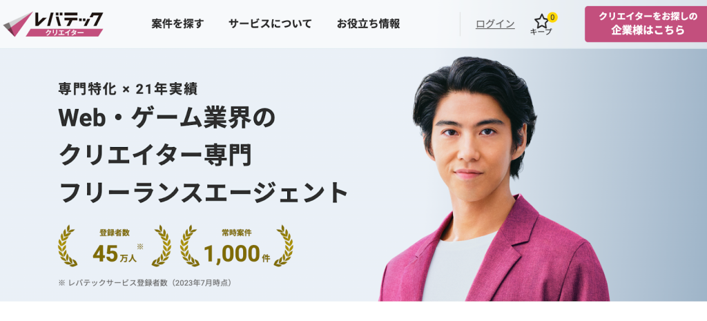 | レバテッククリエイター | ・Webデザイナー ・グラフィックデザイナー ・イラストレーター | 約60% | 542件 |
