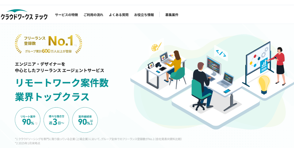 クラウドワークス テックは、ITエンジニアに特化したフリーランス向け案件紹介サービスです。