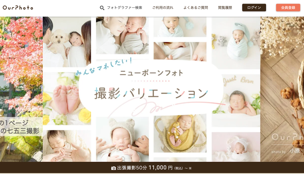 「OurPhoto」は、出張撮影に特化したスキルシェアサービスです。撮影を希望する人とフォトグラファーを結ぶマッチングサービスで、七五三や成人式、プロフィール写真など幅広いシーンで利用されています。フォトグラファーとして登録するには、ポートフォリオや面談による審査が行われます。