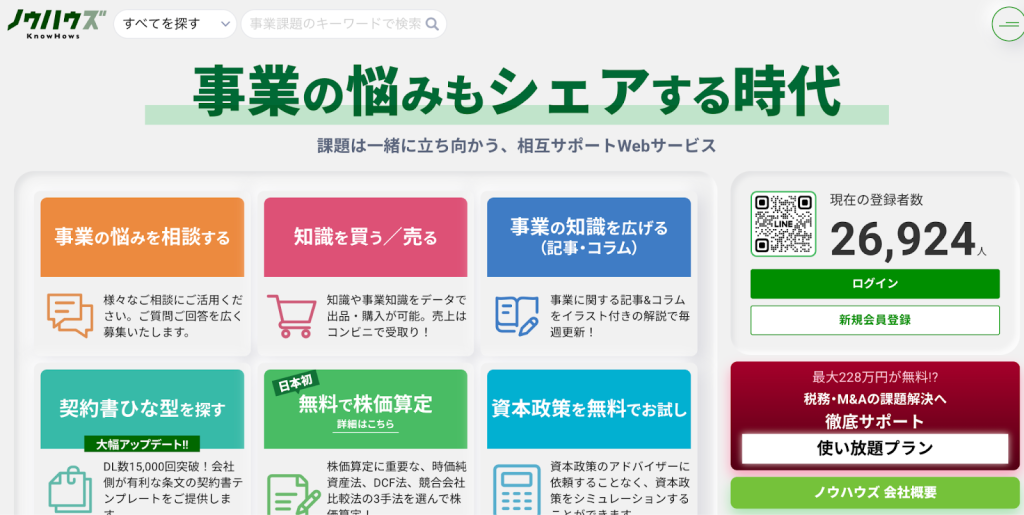 「KnowHows」は、事業の悩みを解決できるコミュニティサイトです。事業責任者・コンサルタント・士業など専門家の立場から、事業に関するアドバイスや知識の販売ができます。