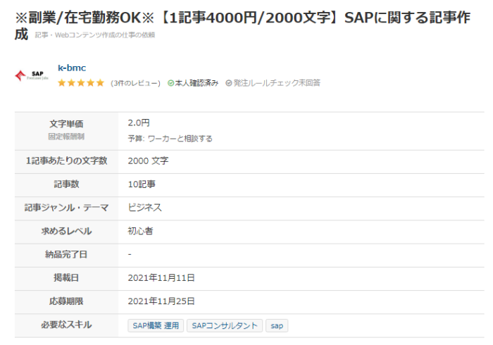 こちらは、SAPコンサルタントお役立ち情報の執筆案件です。難しいことではなく、自分が実際にSAPコンサルタントとして経験したことを自由に執筆する内容です。