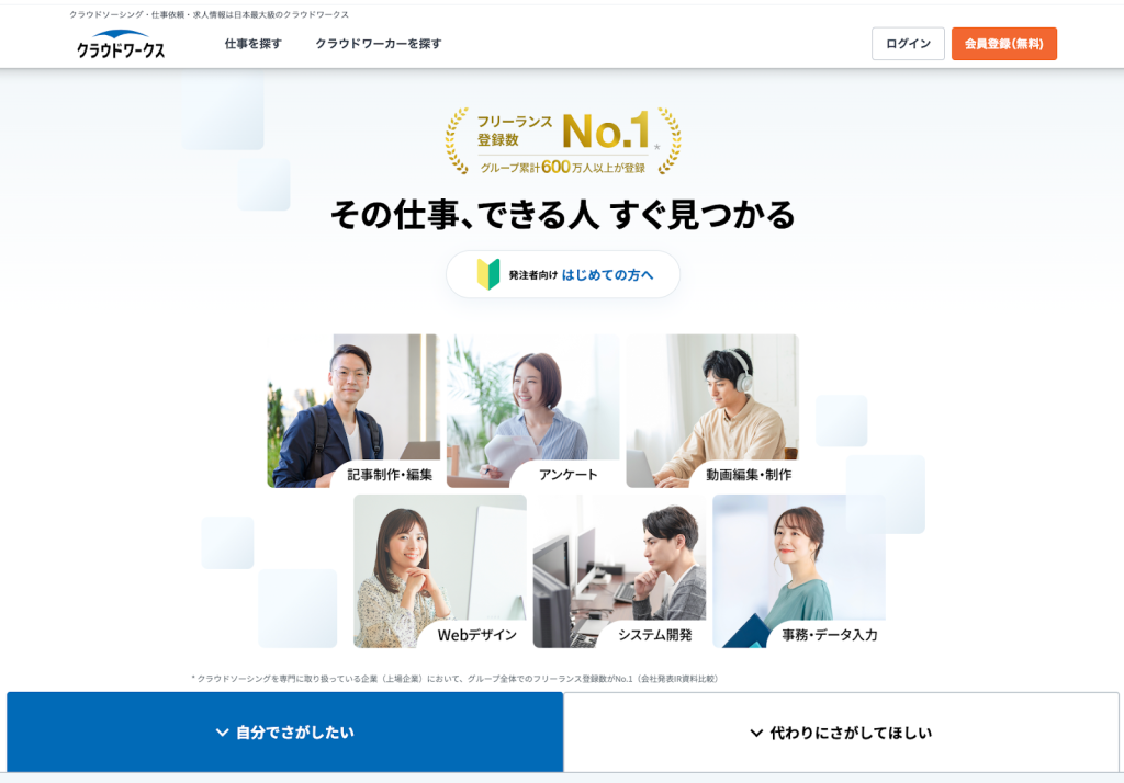 クラウドワークスの特徴は、業界トップクラスの案件数を誇ることです。未経験・初心者向けの案件も多く扱っているので、副業を始めるならまずは登録することをおすすめします。