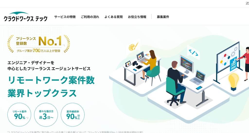 - 案件の97%がリモート案件!ITエンジニア・デザイナー向けフリーランスエージェント
