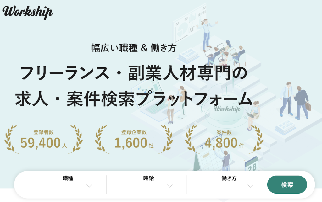 求人検索エンジンとは、就職・転職サイトと同じように、フリーランスや副業向けの求人情報を掲載しているサイトです。就職・転職サイトと違うのは、長期継続の案件が少なく、単発で短期間の業務委託案件が多い点です。