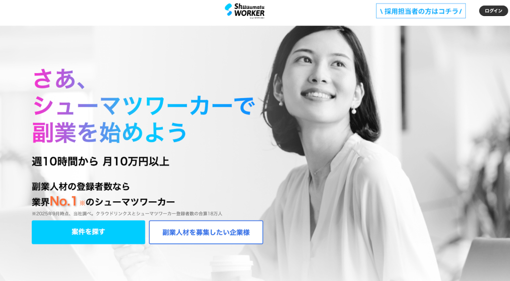 - 副業エージェント:土日のみや週1~2日の案件を探したい方におすすめ