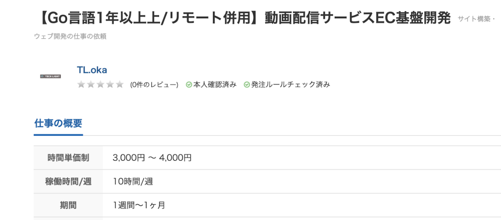 求人サイト・求人情報サイトでも、Go言語エンジニア向けの副業案件を掲載しています。