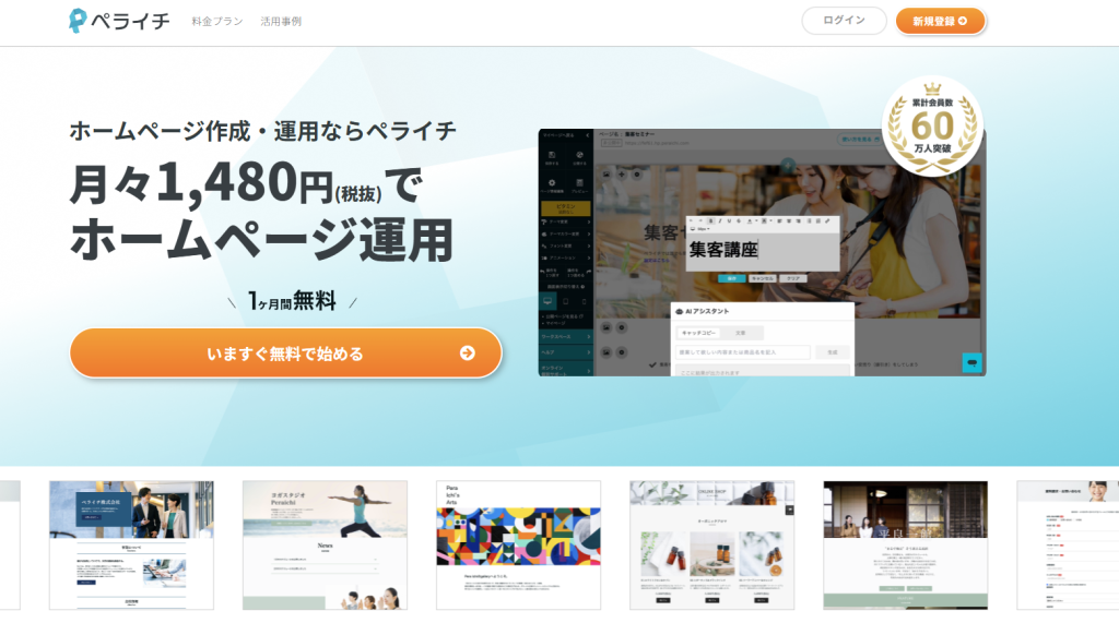 「ペライチ」は数百種類のテンプレートからデザインを選び、テキストや画像を入れるだけでポートフォリオサイトが作成できるサービスです。パーツのドラッグ&ドロップでデザインを構築でき、簡単な画像編集にも対応しています。レスポンシブ対応なので、モバイルからの閲覧が多いケースでも安心です。