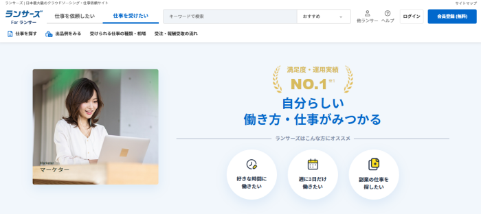 ランサーズは、さまざまな案件を扱っているクラウドソーシングサイトです。ライティング、イラスト、デザイン、プログラミング、動画編集など、さまざまな種類の案件が豊富に見つかります。ジャンルや単価別の検索もできるため、自分の希望やレベルに応じた案件を探しやすいです。契約が終わっても、クライアントから気に入られれば継続的に案件を依頼される可能性もあります。