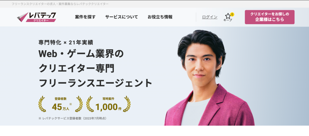 「レバテッククリエイター」は、Web・ゲーム業界のクリエイター向けのフリーランスエージェントです。