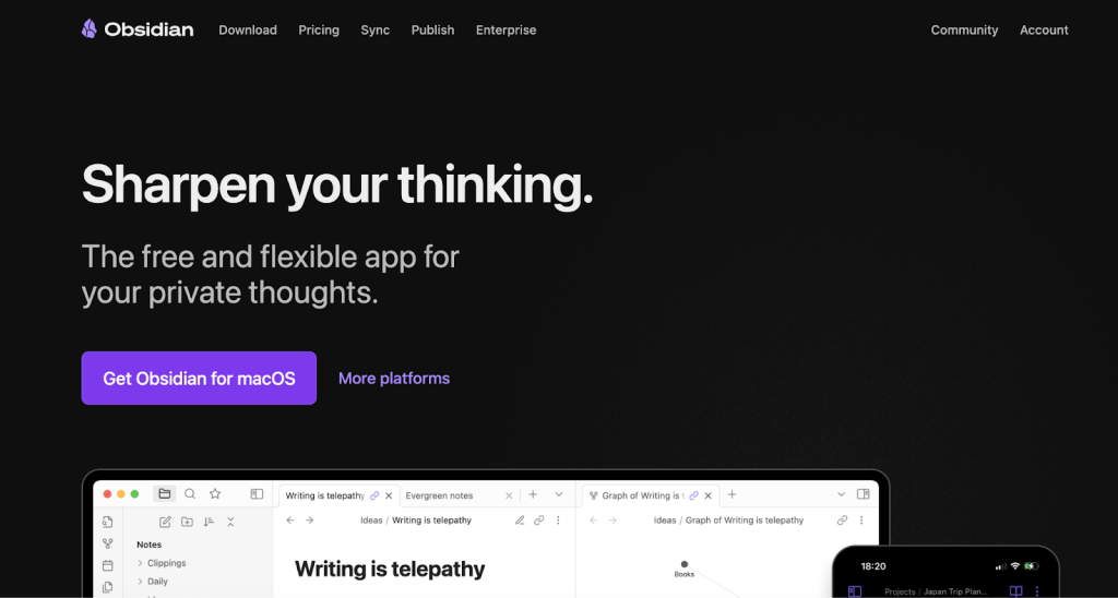 Obsidianは、Markdownに対応したノートアプリです。単なるメモ作成にとどまらず、ノート同士をリンクでつなげたり、グラフビューで関係性を可視化したりできるのが大きな特徴です。プラグインも豊富で、用途に合わせて柔軟にカスタマイズできるというメリットもあります。
