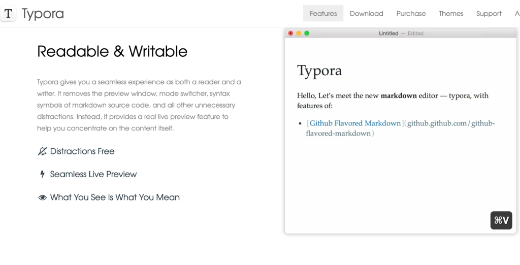 Typoraは、シンプルで洗練されたインターフェースが特徴のMarkdownエディタです。記述した装飾がそのまま画面に反映される即時プレビュータイプで、スムーズに書き進められます。右クリックで装飾を選択できるUIも備えており、Markdown初心者でも直感的に使いやすい点が魅力です。
