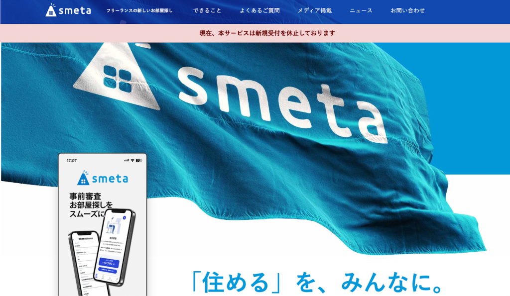 smetaは、フリーランスの物件探しに特化しているサービスで、さまざまメディアへの掲載実績もあります。年収の見込み額を入力すると、目安となる家賃を確認できる仕組みもあります。ただし、現在(2026年3月時点)は新規ユーザーの登録を受け付けていないため、再開したタイミングでぜひ利用してみましょう。