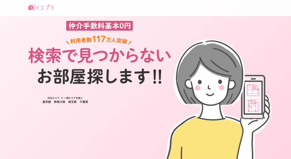 イエプラは、仲介手数料がかからない物件探しのサービスです。店舗費用や広告費を削減しているため、仲介手数料基本0円を実現しています。専用サイトがあり、未公開物件も多数閲覧できます。物件探しはLINEやオンラインでできるため、気軽に利用できます。女性利用者の満足度が高く、安心して物件を探したい人におすすめです。